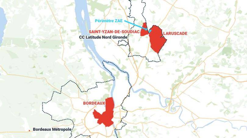 Le projet est localisé à Laruscade, commune située à environ 45km au nord de Bordeaux. Le terrain se situe à l'extrémité nord-ouest de la commune de Laruscade, au lieu-dit « Le pont de la Baraque », entre la route départementale 250, le cours de la rivière La Saye et la Route Nationale 10. Sa desserte directe, ainsi que son accès rapide depuis la gare TER de Saint-Mariens – Saint-Yzan en font une place privilégiée pour développer une activité économique en minimisant les nuisances pour les riverains et l'environnement.