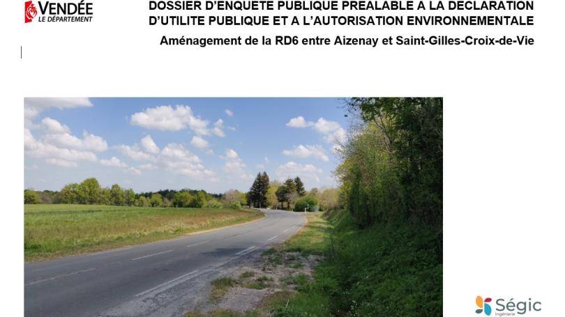 - l'utilité publique des travaux d'aménagement de la RD6 entre Aizenay et Saint-Gilles-Croix-de-Vie ;
